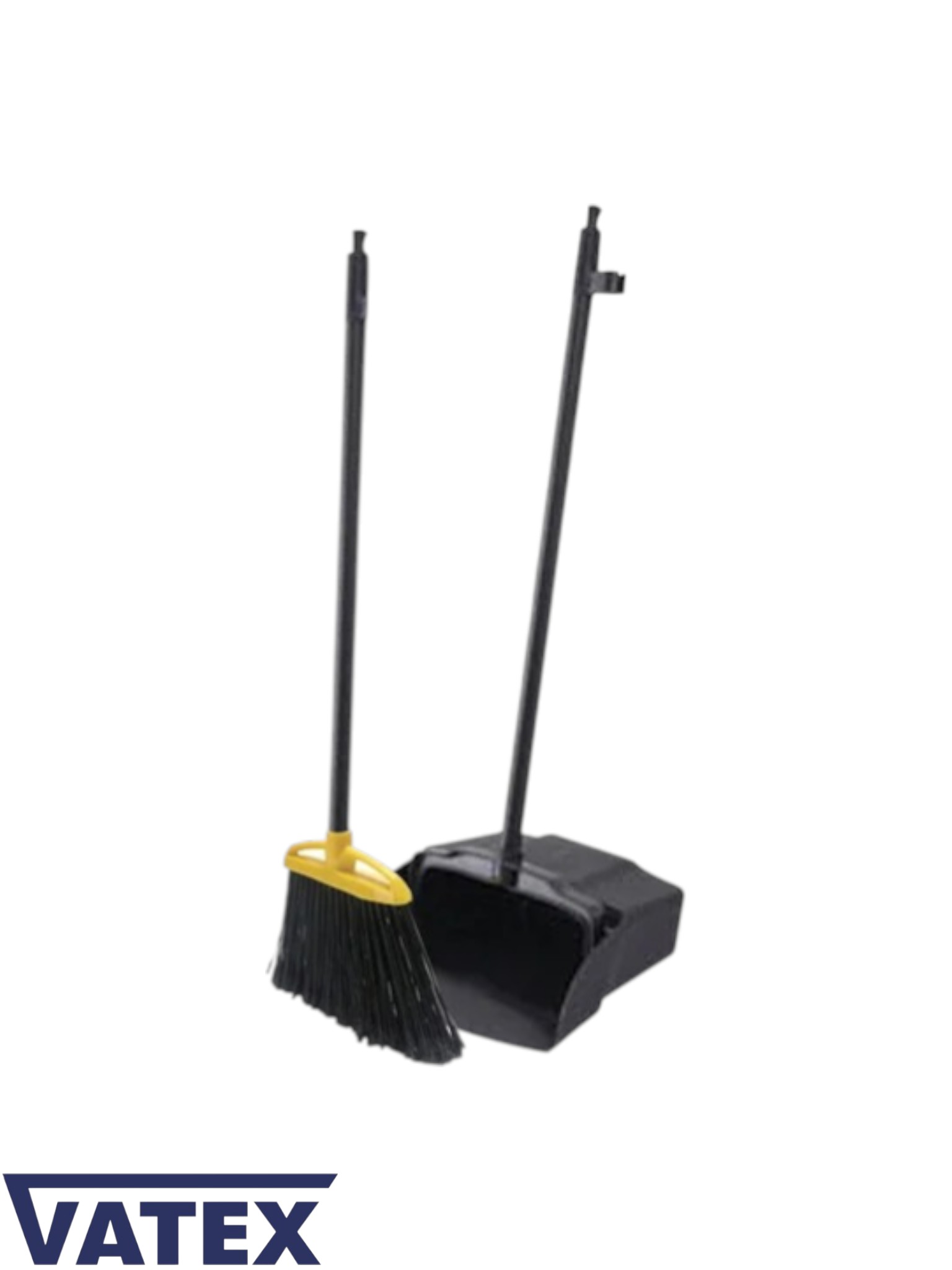 Aan de steel is een beugel bevestigd voor het opbergen van de stoffer